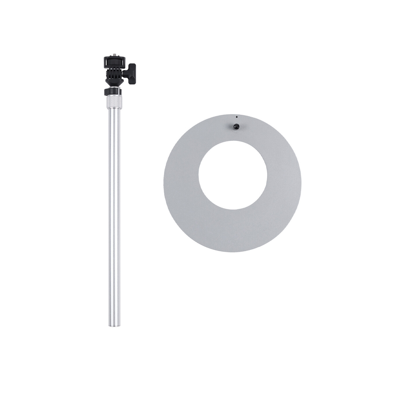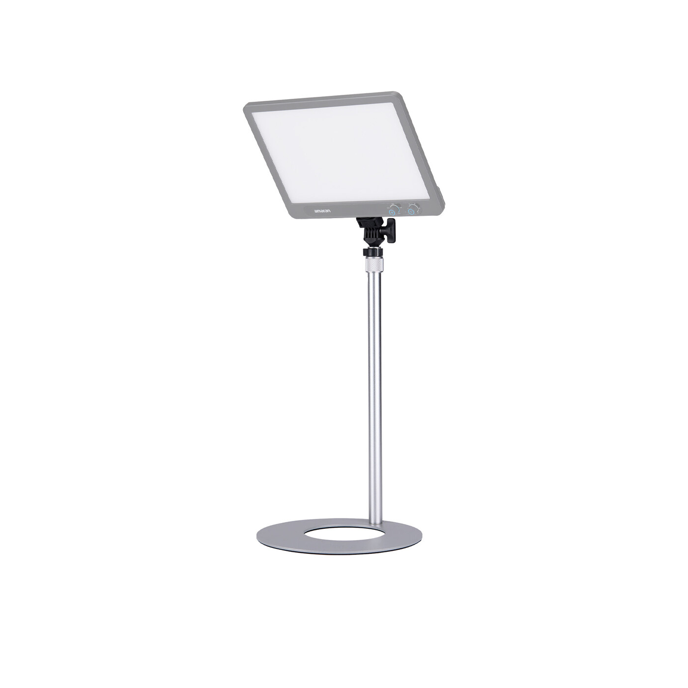 Den universella 1/4"-20 skruvfästet med locating pins säkerställer kompatibilitet med ett brett utbud av amaran-lampor samt andra 1/4"-20-tillbehör. En justerbar tiltmekanism med låsknopp möjliggör exakt positionering – från talking-head-uppsättningar till top-down-innehåll. Den viktade stålbasen med mjuk vaddering ger förbättrad stabilitet samtidigt som den skyddar din arbetsyta.