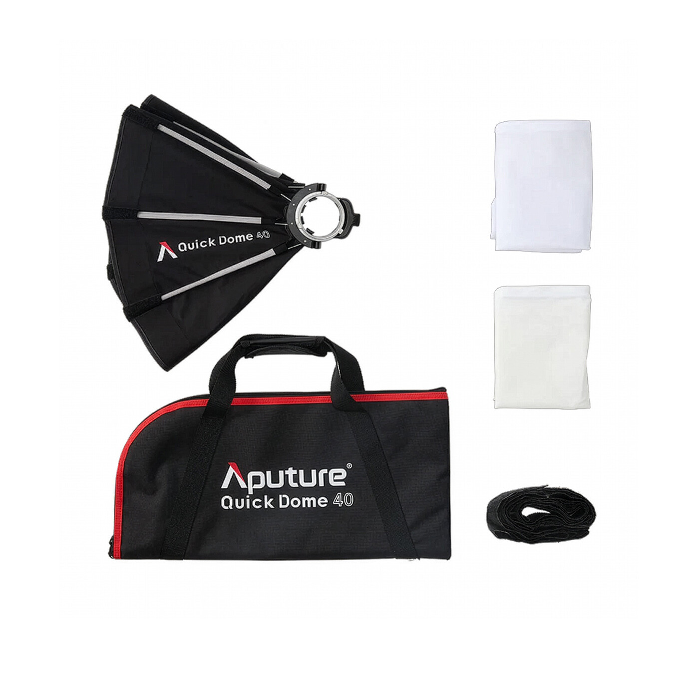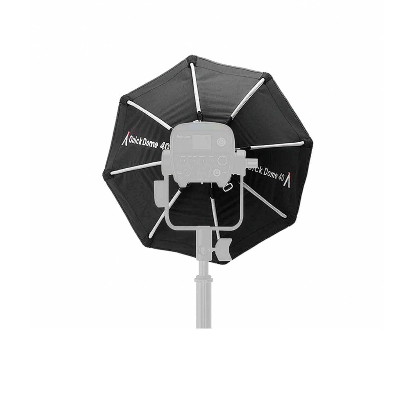 Aputure Quick Dome 40 är en 40 cm cirkulär Mini ProLock softbox designad för STORM 80c och ger snabb, professionell kontroll över mjukt ljus i även de minsta produktionsmiljöerna. Den snabba låsmekanismen gör att alla 8 stödstänger kan spännas på några sekunder, vilket gör uppsättningen intuitiv för handhållen användning, montering och ljussättning i trånga vinklar där utrymmet är mycket begränsat.