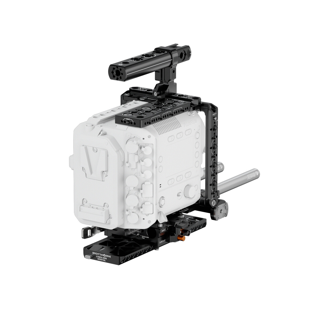 Bright Tangerines tillbehör för Fujifilm GFX ETERNA är precisionskonstruerade för maximal frihet och minimal stilleståndstid. Slit- och korrosionsbeständiga komponenter utvecklade av erfarna designers, ingenjörer och filmskapare.