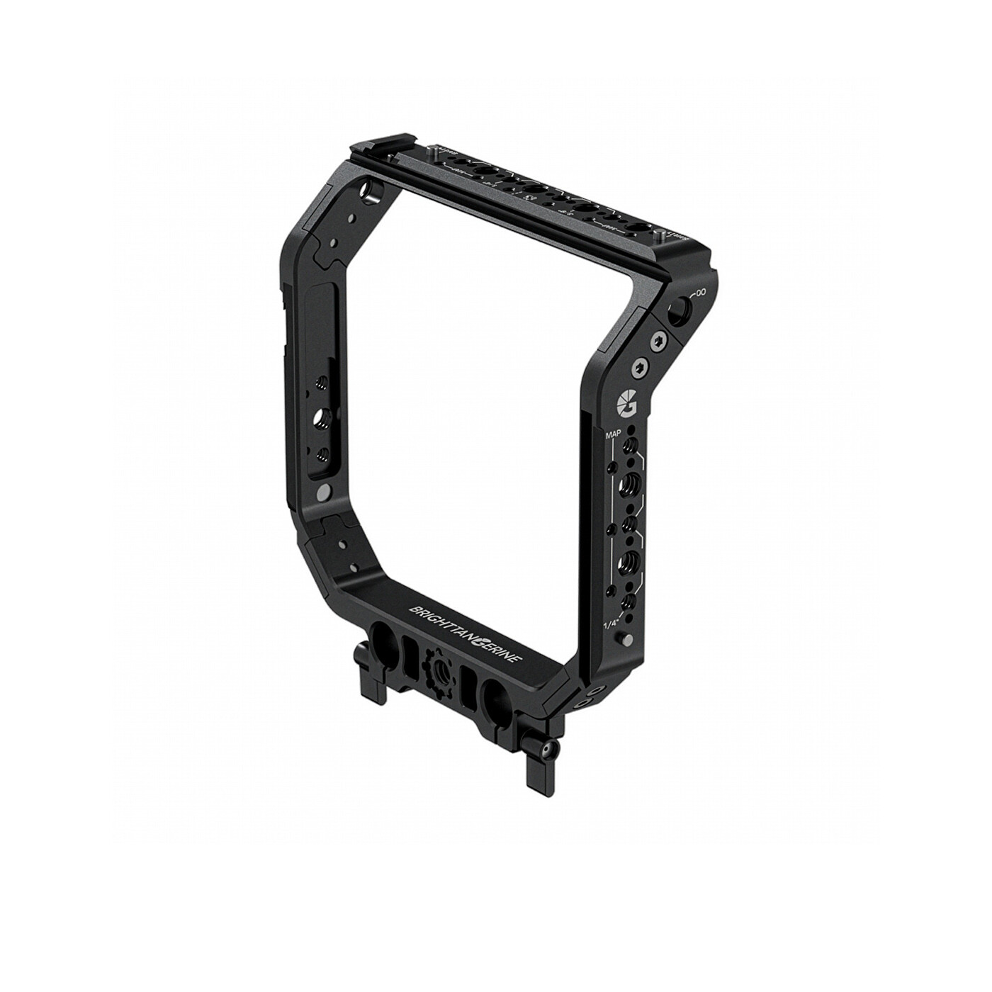 Halo omsluter kamerahuset och erbjuder ett stort antal monteringspunkter. Förutom industristandardgängor (1/4″ och 3/8″) har Halo även MAP- och QD-fästen, cold shoe och NATO-rails. Med en belastningskapacitet på upp till 10 kg utan flex finns stor frihet att bygga riggen efter behov.