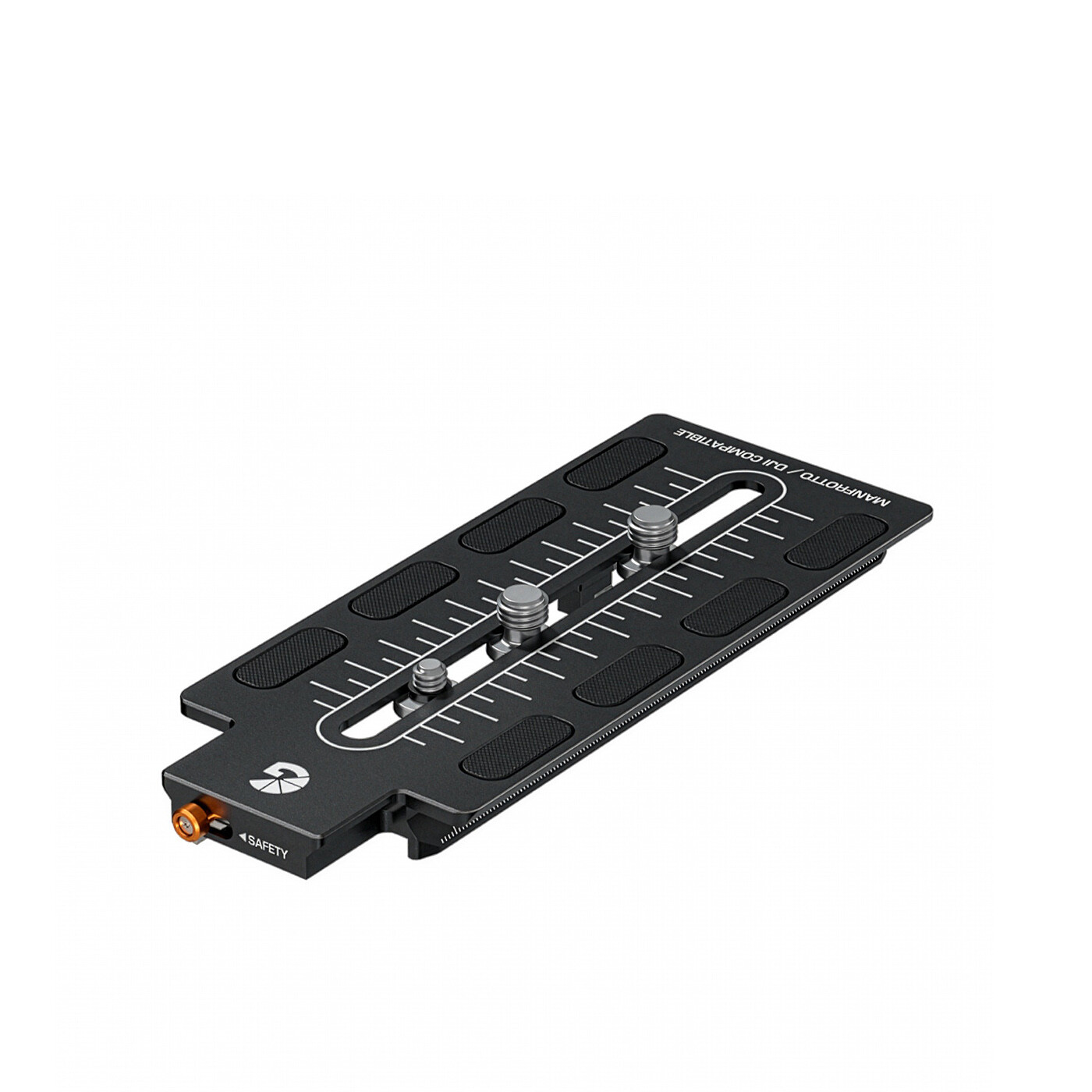 Små skillnader mellan Manfrotto- och DJI-plattstandarder har länge varit frustrerande för filmskapare. Med Universal Dovetail kan du enkelt använda samma fäste för DJI RS 4-gimbaler och Manfrotto 5 Series-stativ. Den fjäderbelastade gear racken för DJI-gimbaler gör monteringen enkel, och en safety stop säkerställer att dovetailen inte lossnar av misstag.