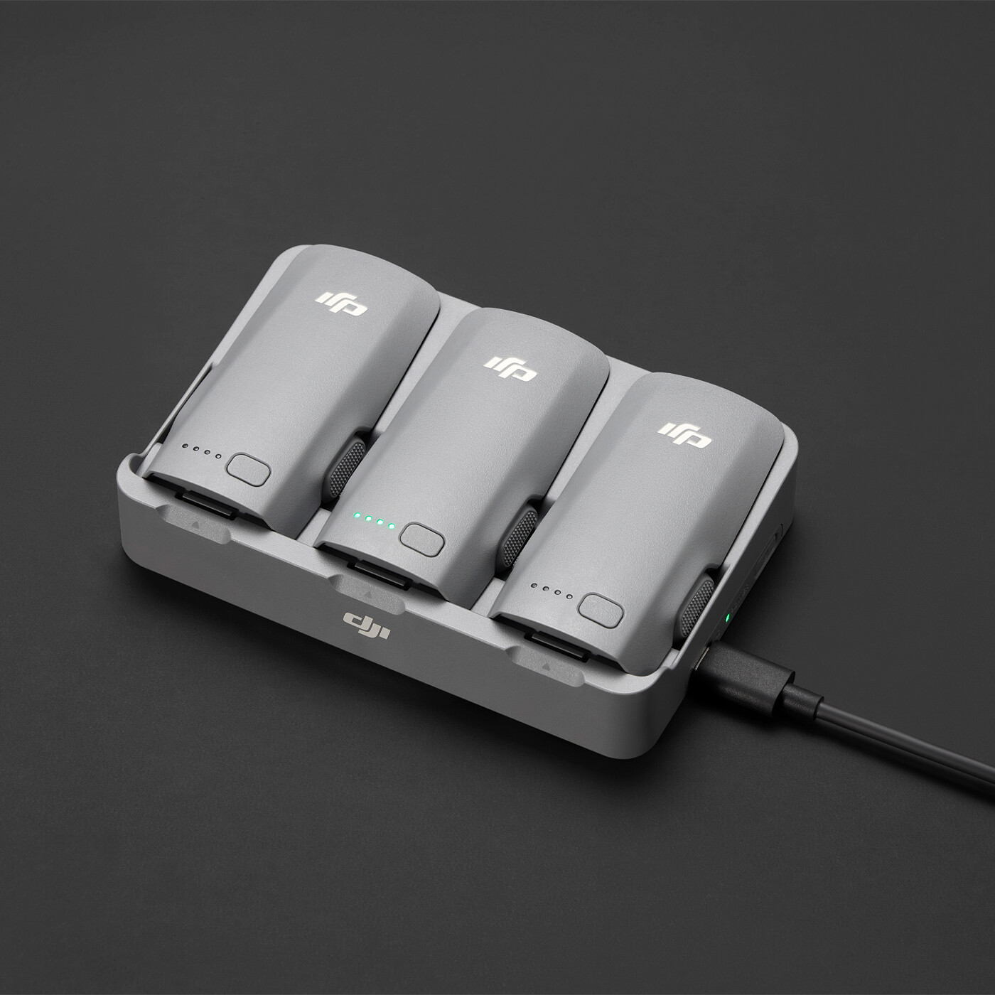 Den kan förvara och ladda batterier. När den används tillsammans med DJI 65W Portable Charger kan den ladda tre Intelligent Flight Batteries fullt samtidigt på endast 68 minuter.