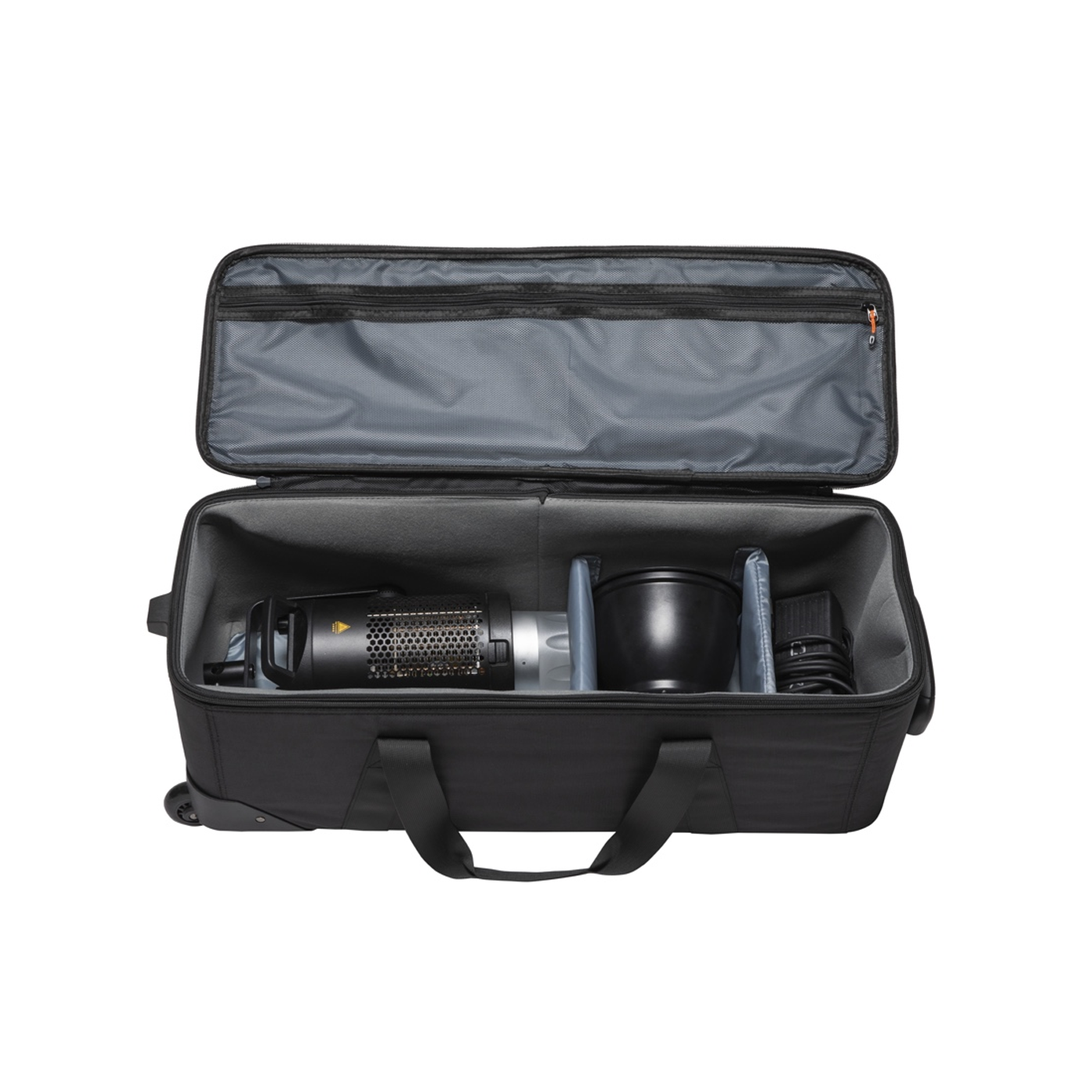 The Godox CB-04 Carrying Bag is made of high quality materials. The bag has a handle for easy transport, and is ideal for protecting three light sets. The CB-04 also has removable panels and dividers.