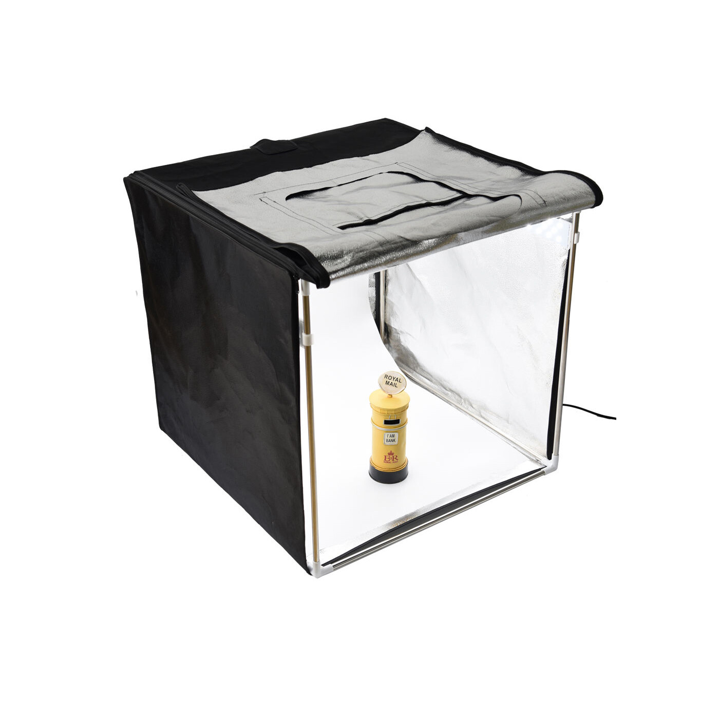 Färgtemperaturen är dagsljusbalanserad vid 5600K med CRI/TLCI på 96/98, vilket ger mycket exakt färgåtergivning. Tältet har två öppningar för kamera (fram och ovanifrån).