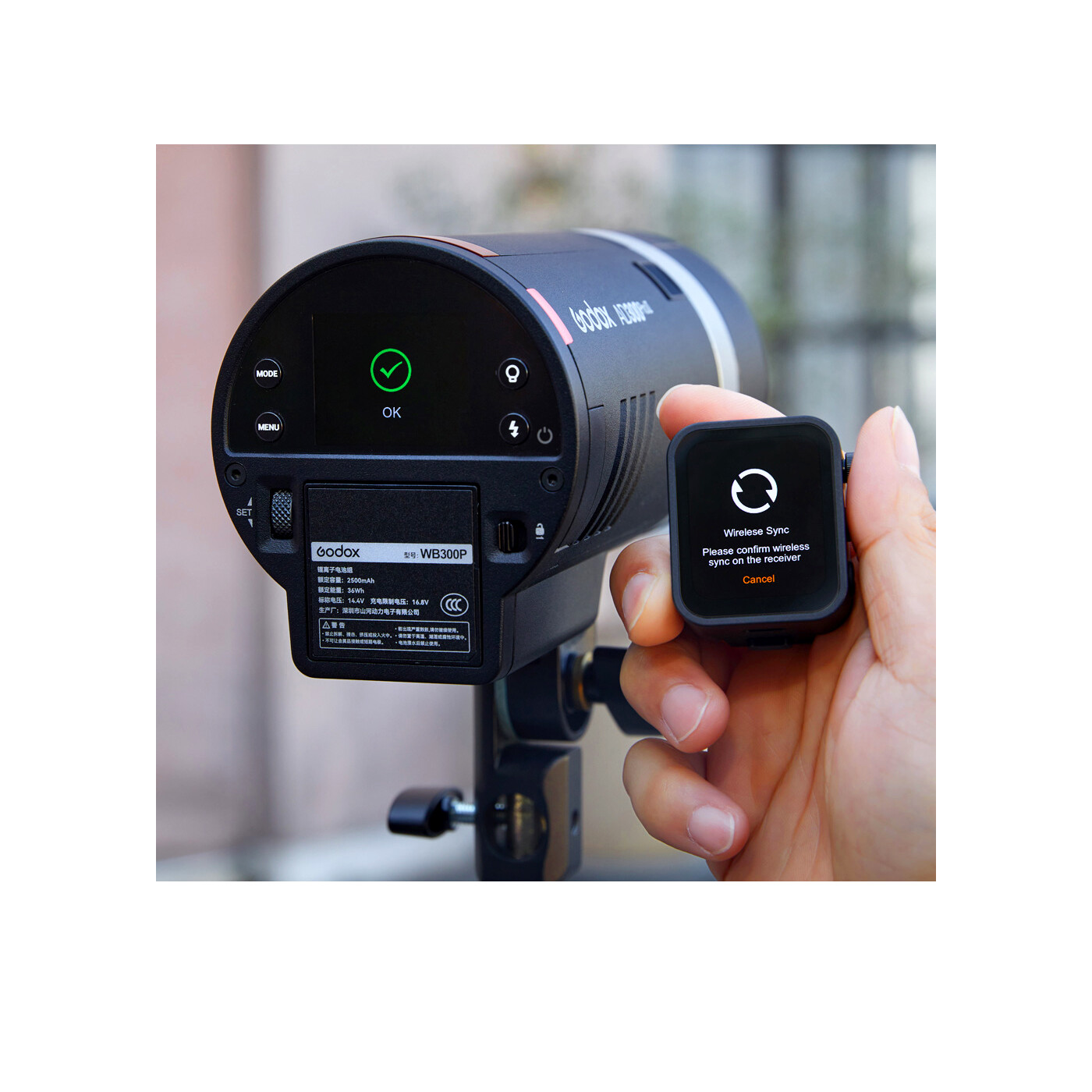 X3 one-tap sync parar AD300Pro II direkt, utan att du behöver ställa in grupp eller kanal. Detta möjliggörs av det inbyggda Godox 2.4 GHz Wireless X-systemet. AD300Pro II är även kompatibel med andra X-serie-sändare (XPro-serien, X2T, X1) för utökad kontroll. För kabelanslutna eller alternativa arbetsflöden finns en 3,5 mm sync-port, samt USB-C-port för den valfria FR433 33 MHz-mottagaren.