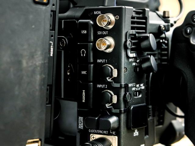 För live-produktioner har EOS C400 en dedikerad 12-pins objektivterminal för broadcast- och cine-servo-objektiv, samt ett brett utbud av anslutningsmöjligheter. Dessa inkluderar mini-XLR-ljudingångar, DIN-kontakt för tidskod, genlock och return video, 12G-SDI och 3G-SDI-utgångar, en fullstor HDMI-utgång, inbyggd Wi-Fi-anslutning, Ethernet och mycket mer.