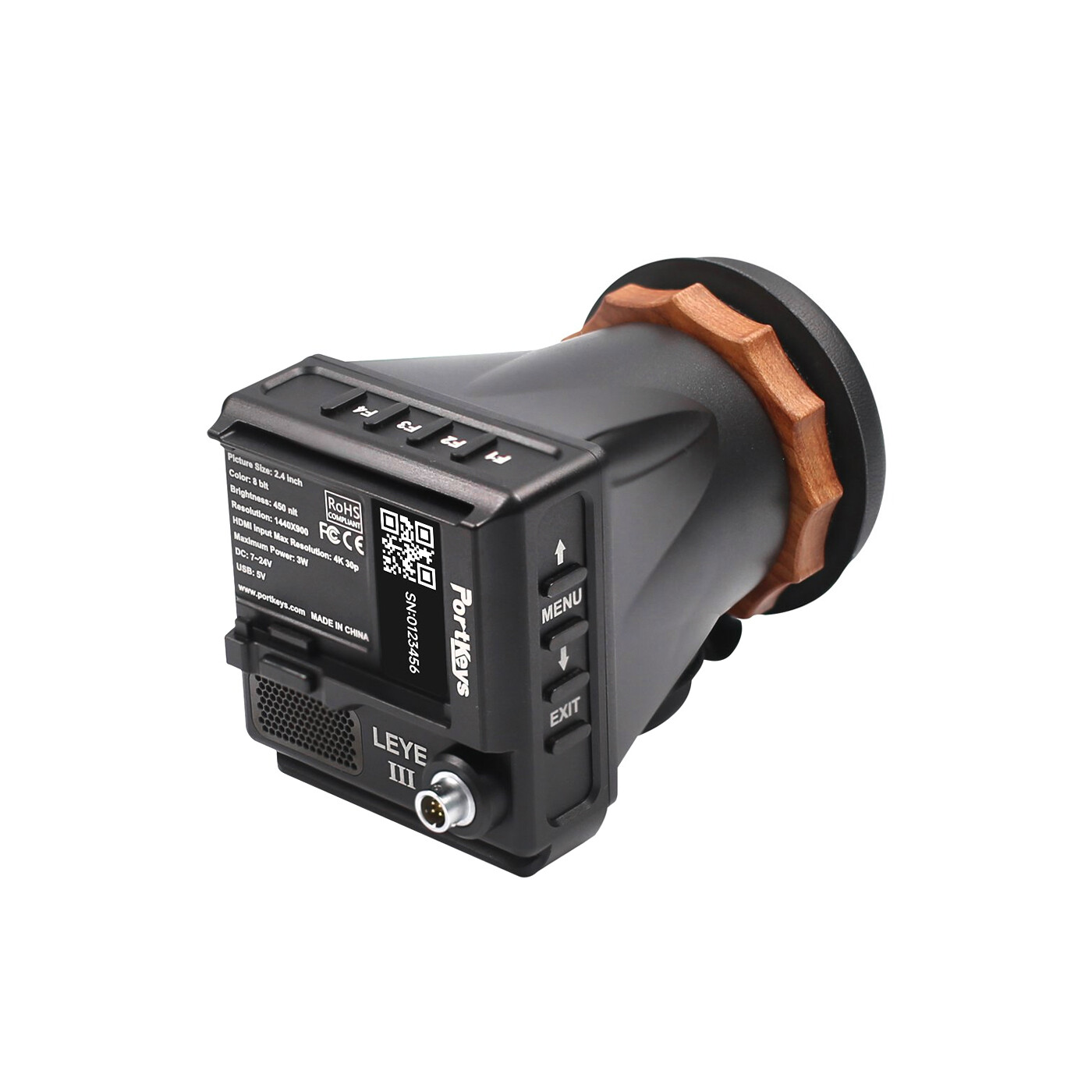 LEYE III är en kompakt EVF med HDMI input som gör det möjligt att visa upp till DCI 4K30 video från kamerans HDMI output. En 2.4" LCD-skärm med 1440 x 900 upplösning, 450 cd/m² ljusstyrka och 1100:1 kontrast ger skarpa och levande bilder som kan ses även i ljusa inspelningsförhållanden.