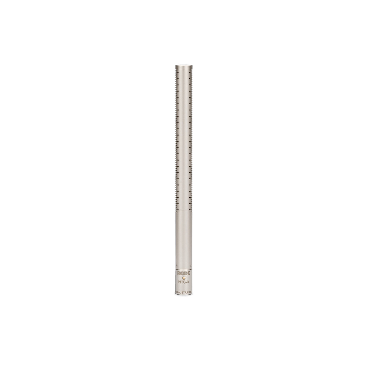 The RØDE NTG3 super-cardioid shotgun microphone is designed for professional use on film, television, electronic news gathering and wherever high-resolution broadcast audio is required.