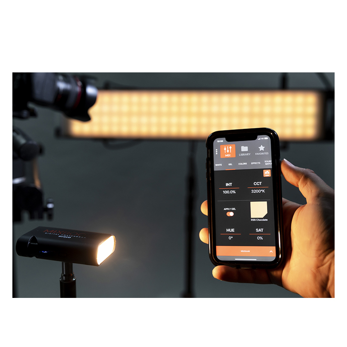 The six-chip MIX LED technology inside MIXBOOK features a proprietary mix of Red, Green, Blue, Lime, Amber and White emitters that enables the device to produce over 130 accurate Rosco gel matches. These colors have been verified – by eye, by meter and by camera – to match traditional tungsten and daylight sources with Rosco gels on them. Using Gel Mode in the myMIX app, users can explore how these True Rosco Colors will perform in their environment.