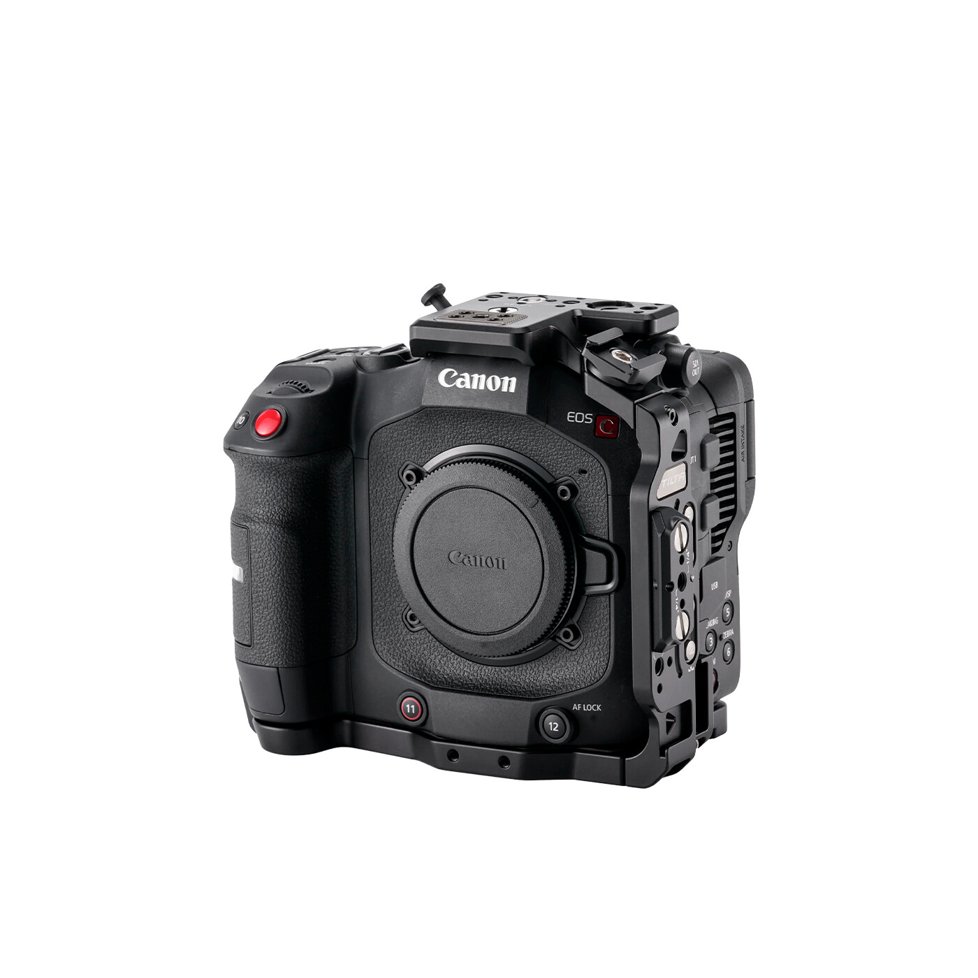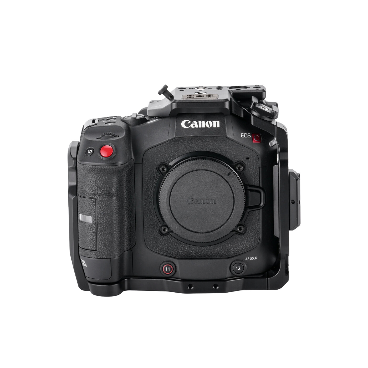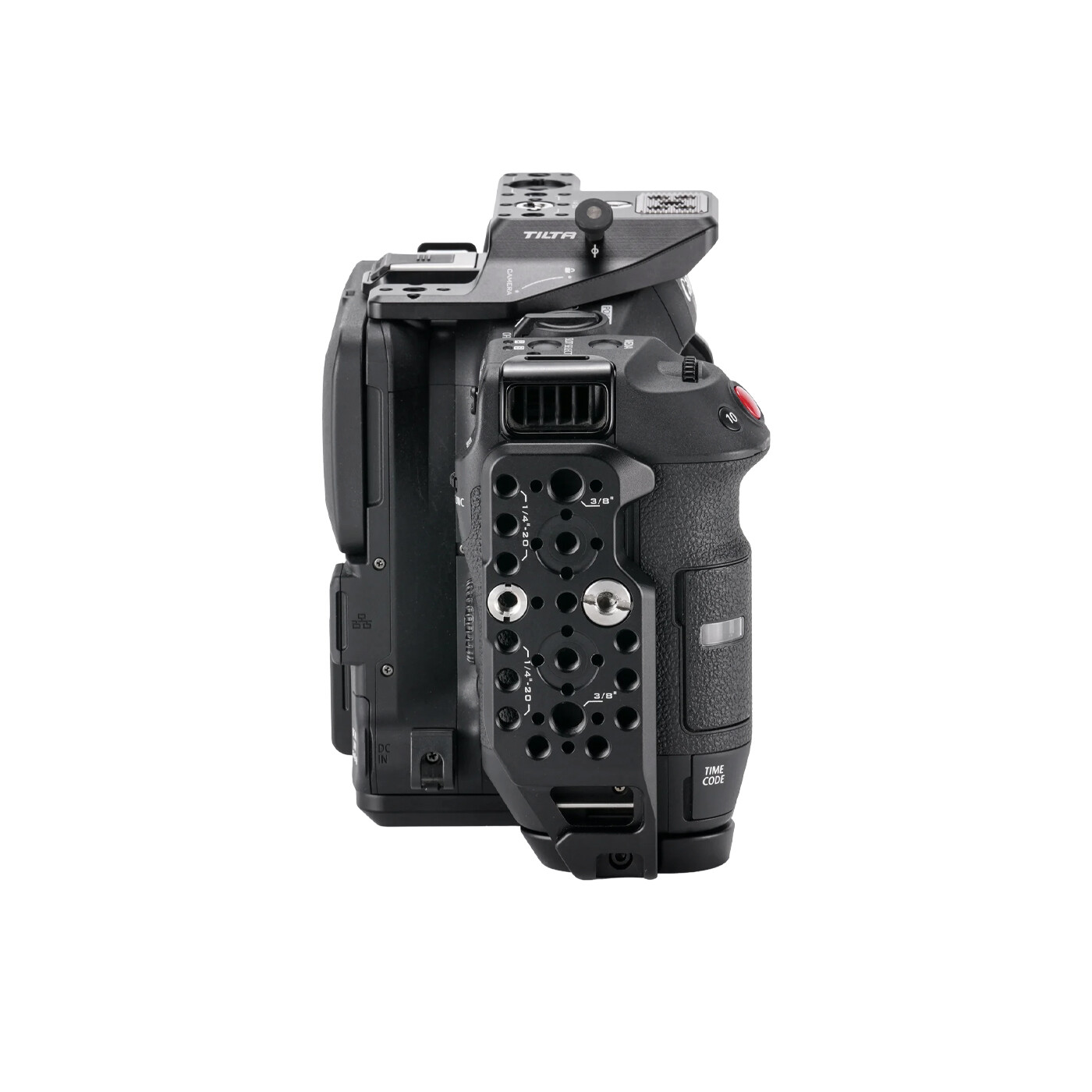 Detta cage ger extra skydd för kamerahuset samtidigt som det utökar monteringsmöjligheterna för olika tillbehör. Full Cage-designen har Cold Shoe Receiver, NATO Rail, Wrist Strap Holder samt 1/4″-20 och 3/8″-16 gängor – båda med locating points. Unikt för detta cage är sidoplattan med integrerade knappförlängare som ger taktil feedback och enkel åtkomst till kamerans reglage. Den motsatta sidoplattan har exakt placerade monteringspunkter som gör det möjligt att montera en Quick Release Plate och snabbt växla till vertikal konfiguration. Toppplattan är utformad för att ge fri åtkomst till det ursprungliga C80-toppgreppet, vilket gör detta bur idealiskt för användare som vill behålla originalhandtaget.