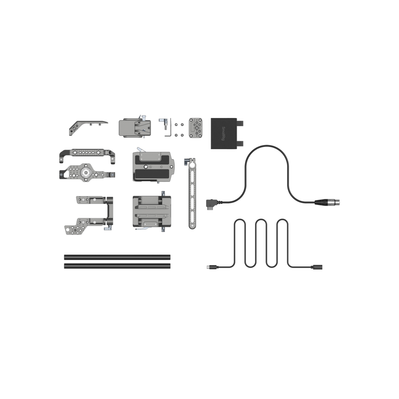 Utformad för att ge filmskapare en omfattande uppsättning funktioner och mångsidiga fotograferingslösningar. Detta cagekitet innehåller en topplatta, dubbla sidoplattor, basplatta, förlängningsmodul för originalhandtaget, V-mount fäste, D-tap till 4-polig strömkabel, 15 mm bas för dubbla rods, 15 mm rods, solskydd, NATO-skena för förlängning av LCD-monitor, förlängningskabel för C till C handtag och låsvred för handtag. Kitets modulära design (topplatta, sidoplattor och basplatta) möjliggör smidig anpassning till olika fotograferingsscenarier.