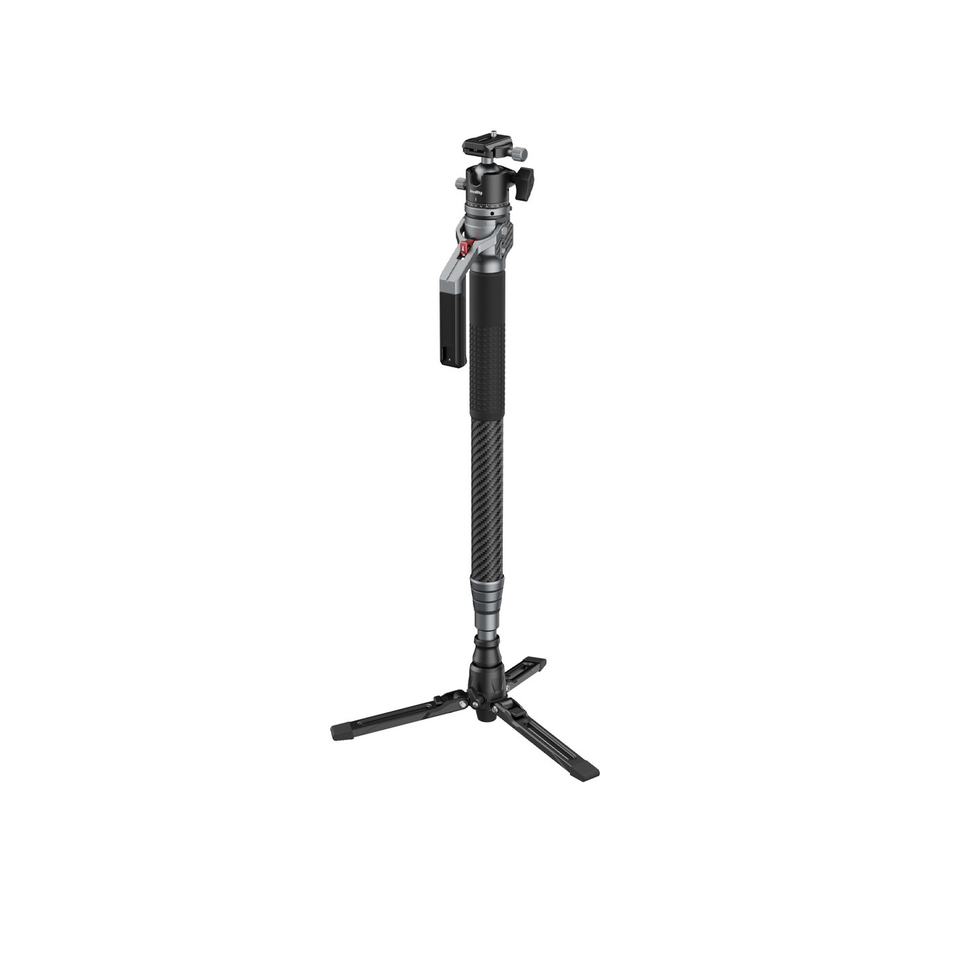Monopoden har även ett 1/4"-20 gänghål med integrerat ARRI 3/8"-16 locating hole, vilket gör det möjligt att montera magic arms och andra tillbehör för att utöka din rigg. Det 360° metallkulhuvudet ger hög hållbarhet och stabilitet, medan de premiumkolfiberbenen ger lång livslängd och klarar belastningar upp till 15 kg för benen och 5 kg för huvudet. Ett inbyggt vattenpass säkerställer exakt nivellering i alla inspelningssituationer.