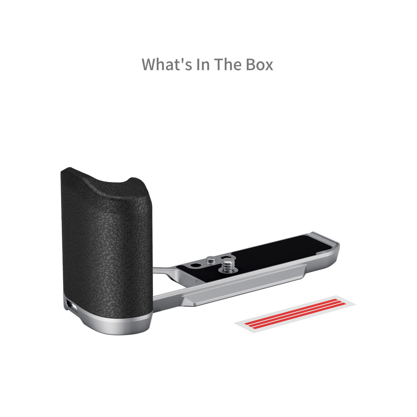 Handtaget låses med en 1/4"-20 thumbscrew med D-ring i botten. Den inbyggda Arca-Swiss quick release-plattan stöder Arca-typ stativ. Tre 1/4"-20 gängor i botten gör det även möjligt att använda stativ och Manfrotto quick release-plattor, och hålen för handledsrem är kompatibla med Wrist Strap 3848 / 3926.