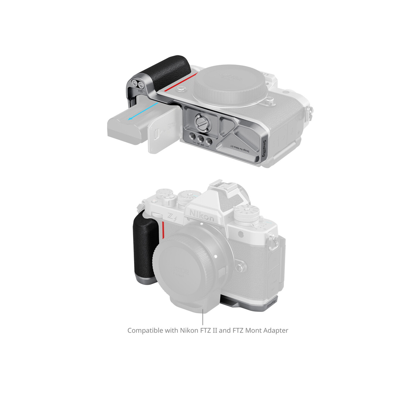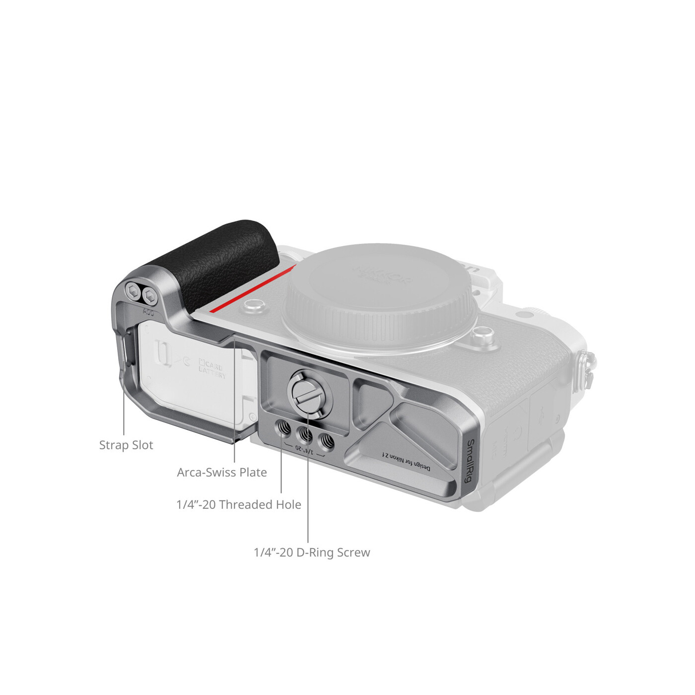 SmallRig 5706 L-Shaped Mount Plate med silikonhandtag för Nikon Z f (Silver) är utformad för att förbättra greppet. Den matchar Nikon Z f perfekt med samma textur och färg som kameran.