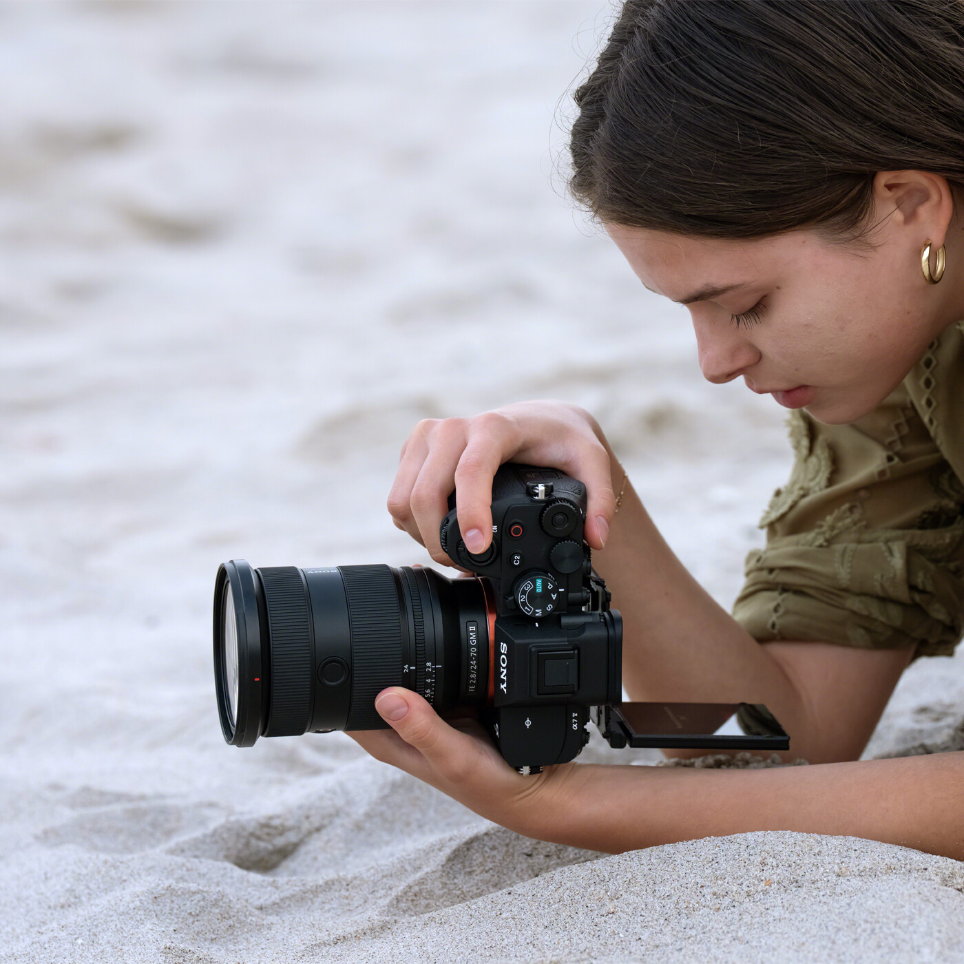 α7 V erbjuder nu storlekarna XS, S, M, L och XL för områdesfokusering. Storleken XS kan göra det enklare att fokusera när föremål i förgrunden, som grenar, är i vägen. Den gör det också möjligt att skapa ett anpassat fokusområde i en angiven storlek och även ett anpassat vertikalt bildförhållande, så att du kan optimera fokuseringen för en lång rad motiv och scener. Ställ bara in form och storlek via den pekkänsliga skärmen.