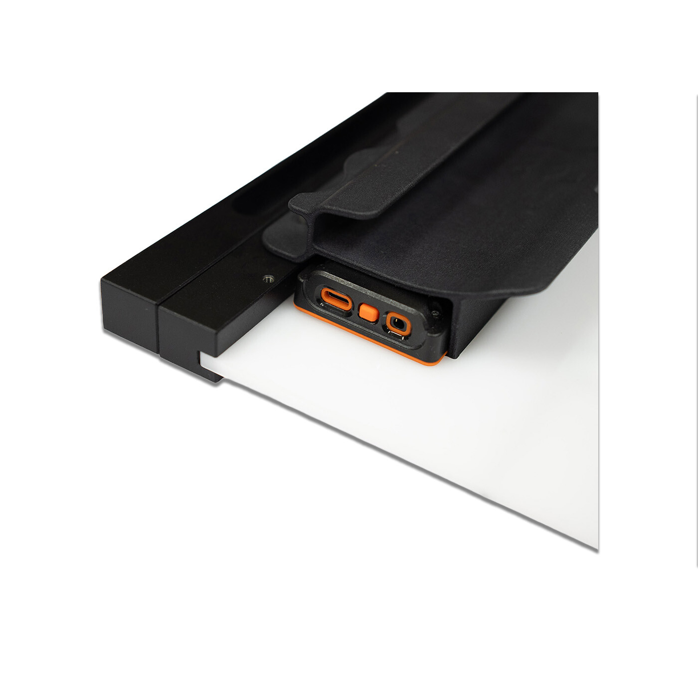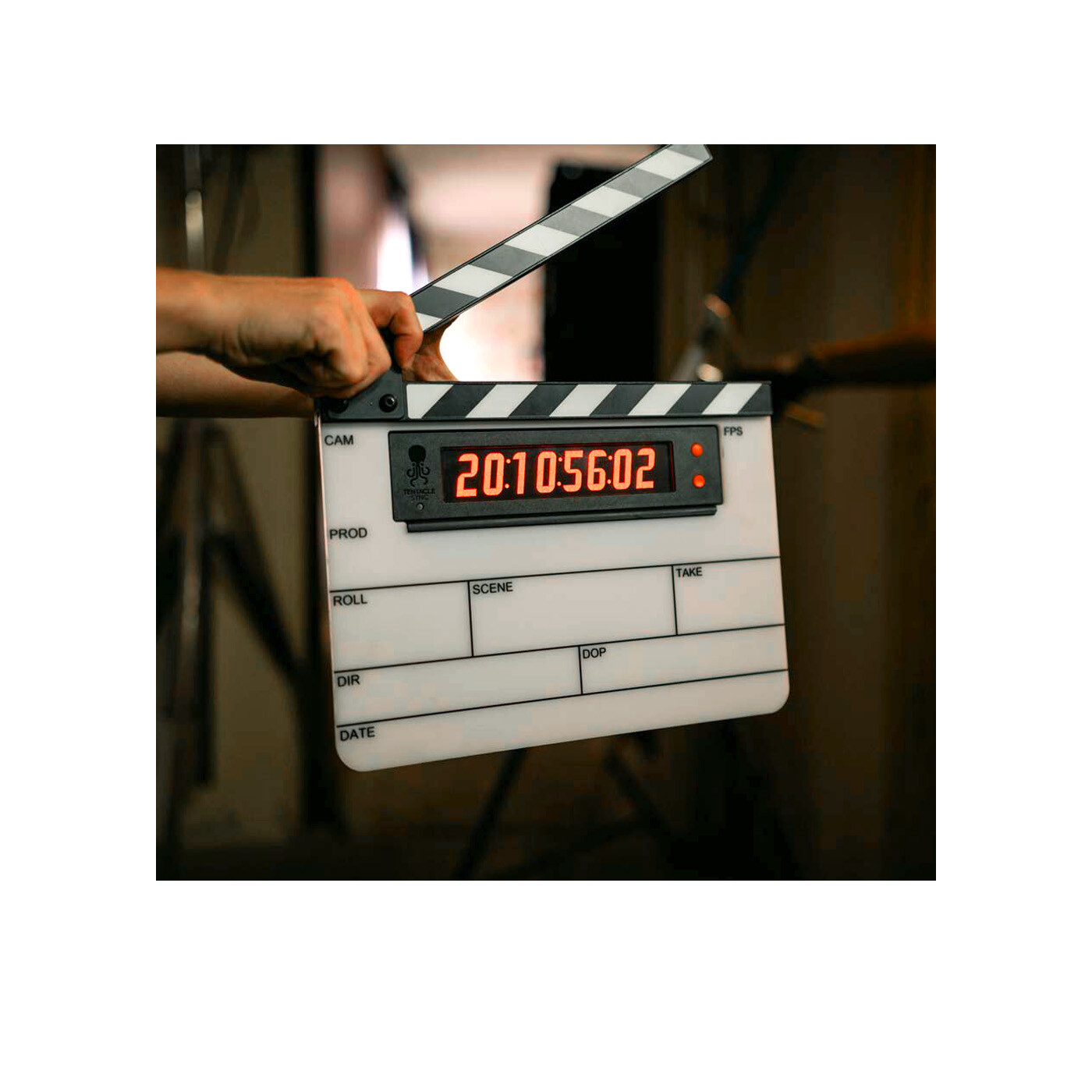 TIMEBAR Timecode Slate levereras komplett med Tentacle Sync TIMEBAR och erbjuder en kraftfull och flexibel lösning för synkronisering på set. Clapperboarden inkluderar en precisionsbearbetad bräda med Roll/Scene/Take-layout, hållbara clapper sticks och en specialdesignad hållare.